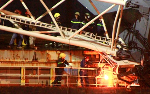 Tin tức từ Tri Thức Trực Tuyến, khoảng 23h30 khuya 24/11, trong lúc bốc dỡ hàng cho tàu Fortune Navigator của Công ty cổ phần vận tải biển Việt Nam (Vosco), chiếc cần cẩu trọng tải hàng trăm tấn của Cảng Tân Thuận (quận 7, TP HCM) bất ngờ gãy đôi, đổ sập đè lên hầm tàu hàng.