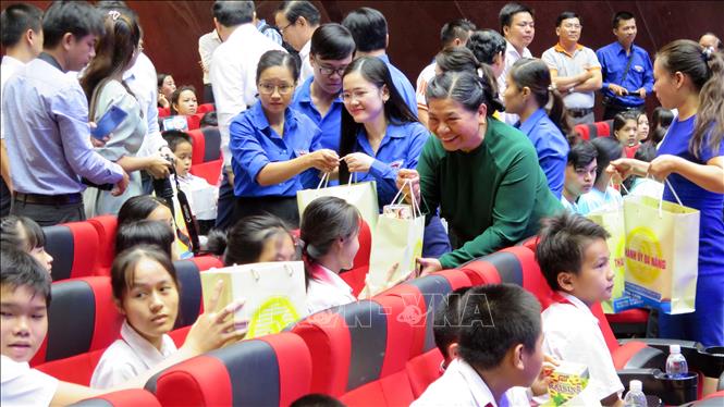 Đồng chí Tòng Thị Phóng tặng quà cho thiếu nhi Đà Nẵng. |