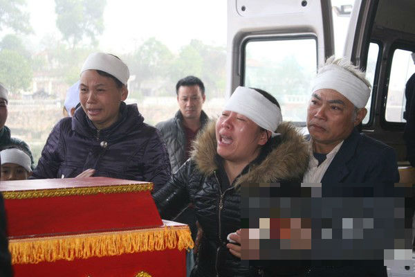 Người nhà khóc ngất bên lĩnh cữu chị Loan. |