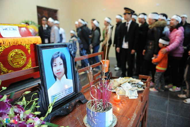 Người mẹ của chị Châu Loan khóc hết nước mắt bên linh cữu của con. |