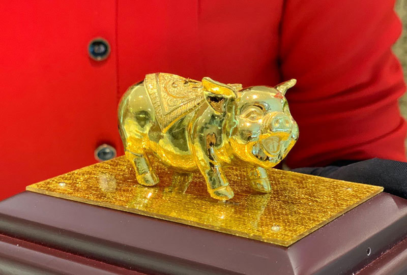 “Năm 2019 là năm Kỷ Hợi nên tượng heo vàng ròng nguyên khối là sản phẩm được đặt mua nhiều nhất trong bộ 12 con giáp”. Vị giám đốc này cho hay, đa phần mọi người đặt tượng heo vàng với khối lượng 1-1,5 lượng vàng/sản phẩm, tức khoảng 40-60 triệu đồng (giá đã bao gồm công chế tác).