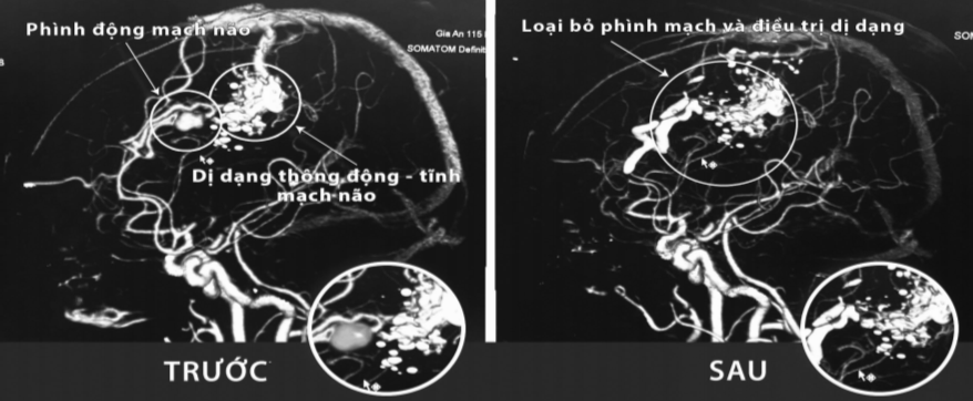 Sau khi bệnh nhân được gây mê nội khí quản, các bác sĩ đã đặt ống dẫn vào động mạch đùi phải, đưa vi ống thông vào động mạch não trước bên trái... Thủ thuật được kết thúc an toàn, không tai biến, bệnh nhân không bị mất máu, vết mổ sạch. Sau đó, bệnh nhân được điều trị phục hồi và xuất viện.