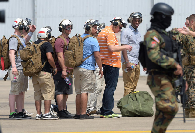 Lực lượng lính thủy đánh bộ Mỹ diễn tập sơ tán quân nhân tại căn cứ quân sự ở Thái Lan năm 2015 - Ảnh: AFP |