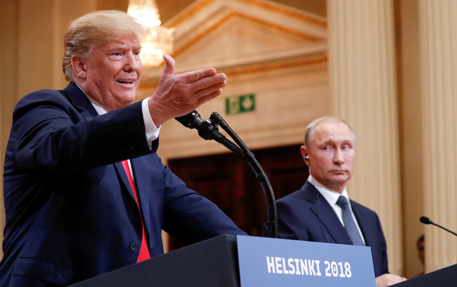 Tổng thống Mỹ Donald Trump và Tổng thống Nga Vladimir Putin tại cuộc họp báo sau hội nghị thượng đỉnh ở Helsinki hồi tháng 7/2018. Ảnh: Reuters |