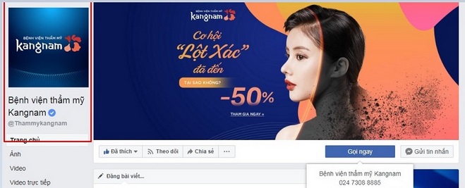 | Nhận diện Fanpage chính thức của Bệnh viện thẩm mỹ Kangnam. |