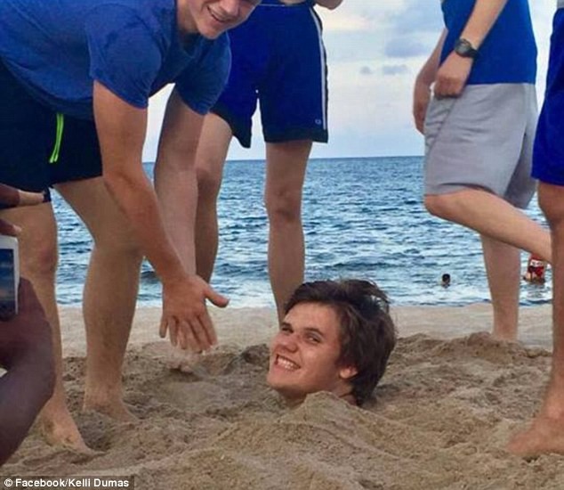 Chàng trai kém may mắn đó là Michael Dumas (17 tuổi), đến từ Memphis, Tennessee, Mỹ. Được biết Michael Dumas cùng bạn bè vui chơi tại bãi biển Pompano vào tháng 6 vừa qua. Tại bãi biển, chàng trai được các bạn mình chôn dưới cát.