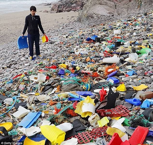 Ô nhiễm chất dẻo đại dương là do con người vứt rác thải đồ nhựa xuống biển. |
