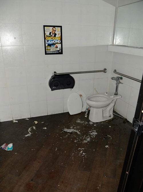 Một nhà vệ sinh bị hư hại trong cuộc tấn công (Ảnh: The Mirror) |