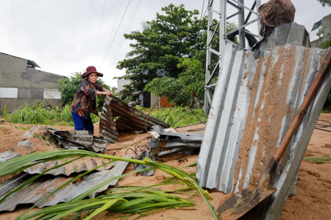 Bà Nguyễn Thị Xin (54 tuổi) nhặt nhạnh những đồ đạc còn sót lại sau mưa lũ. Bà Xin cho biết nước lũ khiến căn nhà bà đang thuê ở bị sập hoàn toàn, đồ đạc bị cuốn trôi xuống sông. "Tui đã không có nhà, phải ở thuê ở mướn, giờ mưa lũ như này cũng không biết làm sao nữa", bà Xin tâm sự. - Ảnh: Vnexpress. |