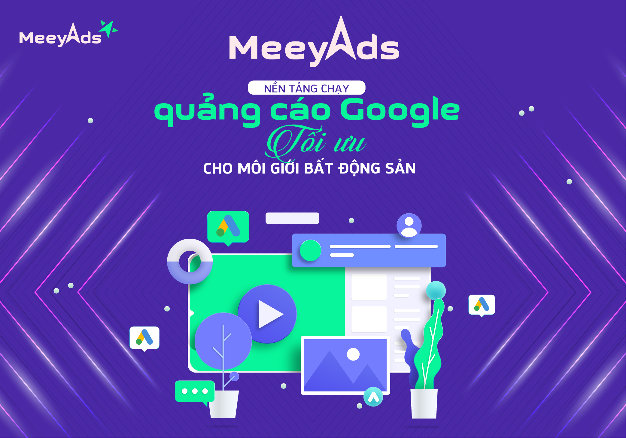 Bên cạnh sản phẩm hữu ích là website MeeyLand.com và App MeeyLand, hệ sinh thái công nghệ BĐS Meey Land còn đem đến cho các nhà môi giới những công cụ đi kèm là Meey Page và Meey Ads. Trong đó Meey Page – nền tảng thiết kế landing page tự động và miễn phí cùng Meey Ads – nền tảng chạy quảng cáo Google tối ưu.