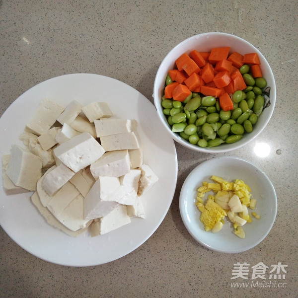 Tôm, đậu phụ, cà rốt, đậu Hà Lan, rượu nấu ăn, hành lá, tiêu, muối.