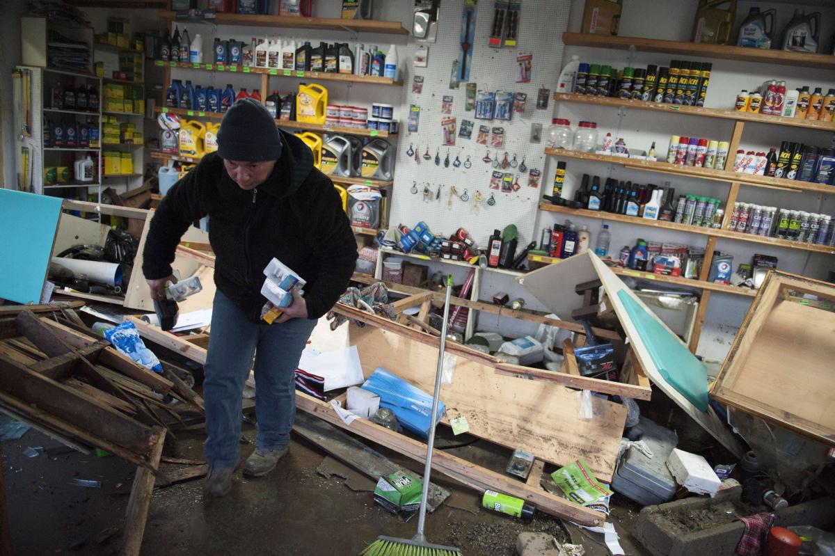 Một người đàn ông sắp xếp lại hàng hóa tại cửa hàng của mình. Ảnh: Getty. |