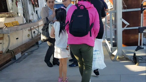 Một nhóm du khách Trung Quốc đi thăm những con sư tử biển ở Cảng Steveston gần Richmond ở British Columbia, Canada. Những du khách này trò chuyện với nhau rất vui vẻ bằng tiếng Quan Thoại, trong đó có một cô gái nhỏ mặc bộ váy màu trắng in hoa.