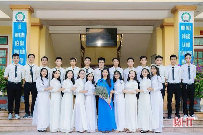 Lớp 12A8 Trường THPT Nguyễn Đình Liễn được xem là lớp học "siêu nhân". Ảnh: Báo Hà Tĩnh. |