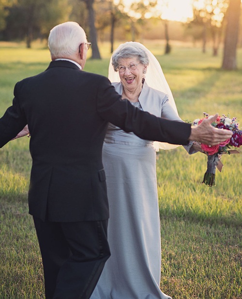 Margaret, 89 tuổi được mặc trên mình một chiếc váy cưới hoa oải hương và một tấm màn che, trong khi Ferris, 90 tuổi bảnh bao trong bộ vét lịch lãm. Bộ ảnh được chụp bởi nhiếp ảnh gia Lara Carter.