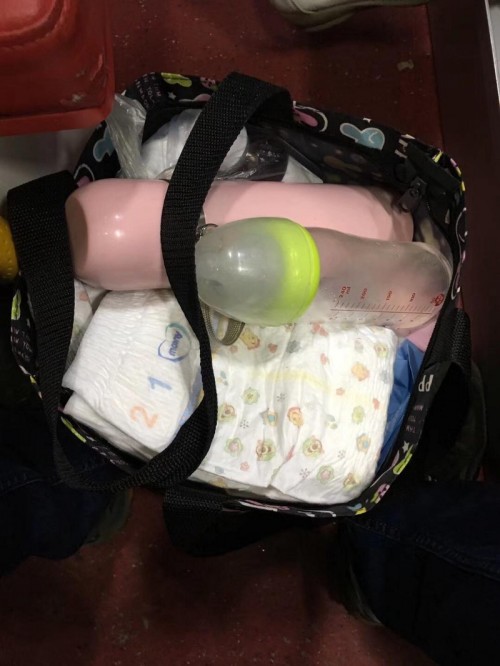 Bé gái được đặtt rong một chiếc xe đẩy, bên cạnh còn có một chiếc chiếc túi, balo đựng đầy sữa bột, bỉm, thuốc men và quần áo cùng một bức thư dài khoảng 1.000 chữ được cho là do bố mẹ bé gái để lại.