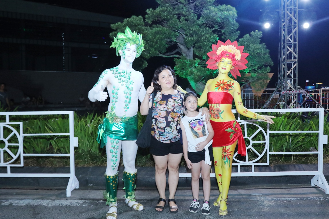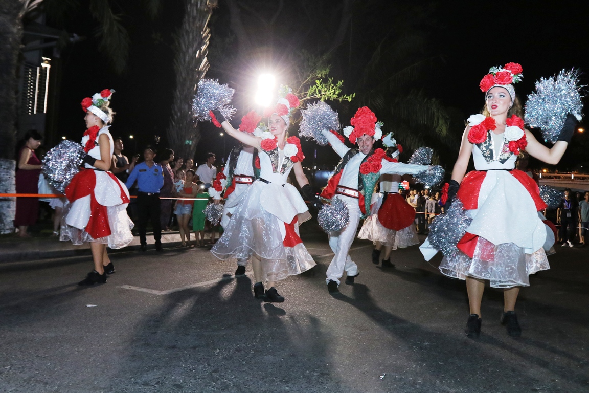 Trước đó, các vũ công cũng đã khuấy động cả tuyến phố Bạch Đằng và thu hút lượng lớn “fan hâm mộ” cùng diễu hành theo 4 xe hoa đại diện 8 nước tham dự DIFF 2019 được trang trí lộng lẫy với các loài hoa đặc trưng của các nước như hoa mẫu đơn – hoa hồng tudor, hoa sen – hoa hướng dương, hoa lan chuông – hoa loa kèn, hoa lan cattleya – hoa anh túc đỏ.