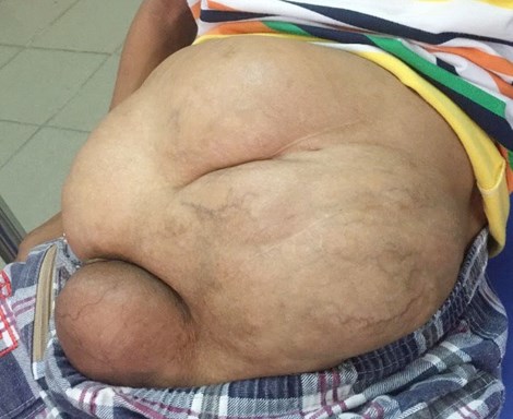 Theo đó, khối u này đã chiếm toàn bộ ổ bụng và lan vào tinh hoàn, vùi luôn dương vật của bé vào bên trong. Chính vì vậy mà 11 năm qua bệnh nhi đi tiểu xong phải rửa… như con gái. Phẫu thuật là cách cuối cùng để cứu bé thoát khỏi tình trạng đau đớn và nguy cơ bị hỏng tinh hoàn.