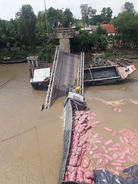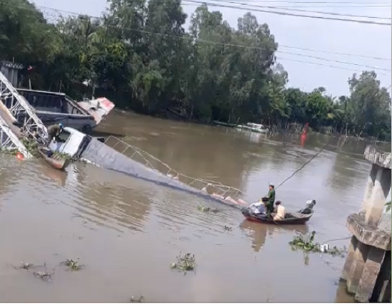 Nhịp giữa cầu sập đè lên một chiếc ghe neo đậu bên dưới, những người trên ghe cũng kịp thoát thân, không ai bị thương. Người dân đã hỗ trợ chủ ghe sơ tán đồ đạc.
