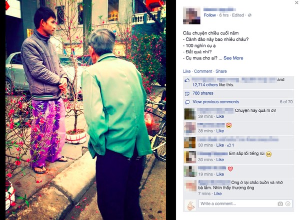 Mới đây, trên Facebook của một bạn trẻ, câu chuyện về một ông lão đi mua hoa đào ngày cuối năm đã nhận được sự quan tâm đặc biệt từ các cư dân mạng.