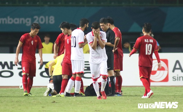 Cầu thủ trẻ của Olympic Bahrain bật khóc sau khi bị đuổi khỏi sân. - Ảnh: VTC News |