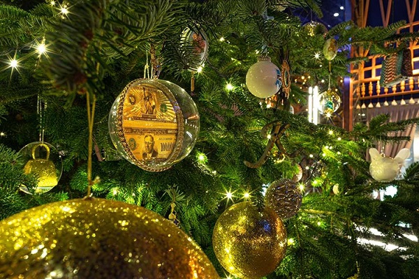Cây thông với hàng trăm món đồ trang trí làm từ kim cương, vàng... - Ảnh: Kempinski Hotel |