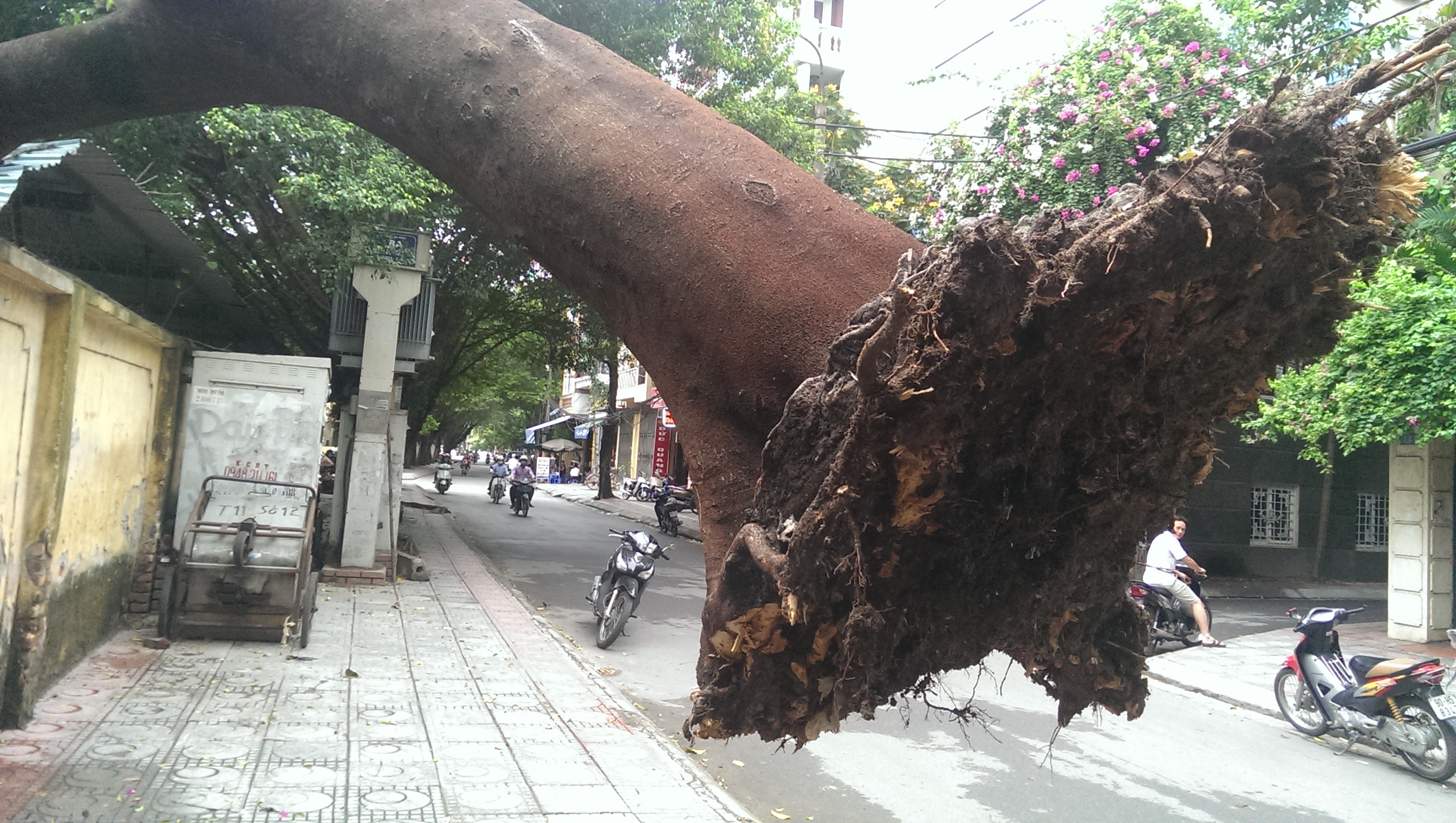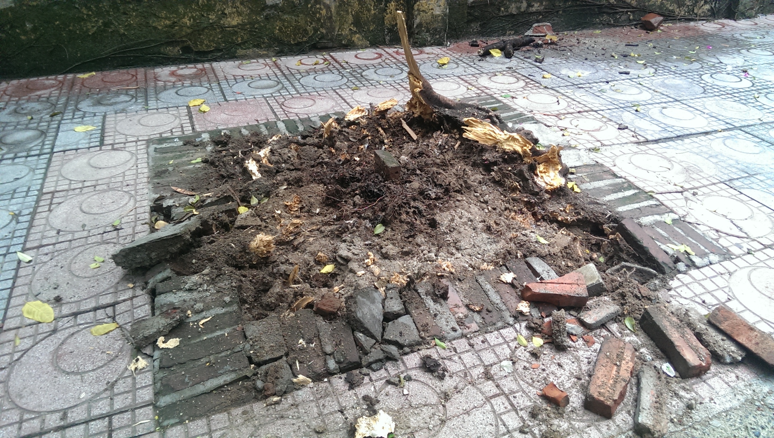 Quan sát gốc cây phượng vỹ bị bật gốc, một công nhân cho rằng, gốc cây đã bị thối, mục ruỗng toàn bộ phần lõi, chỉ còn lại trơ phần viền ngoài. Vì vậy, cơn mưa giông kèm theo gió lớn có thể dễ dàng nhổ bung cả bộ rễ phượng vỹ lên như vậy.