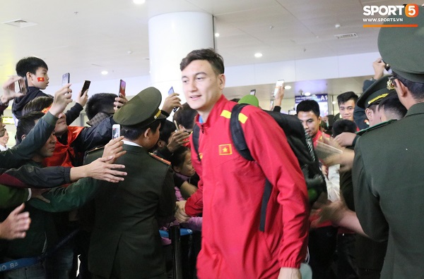 Đúng 21h40 ngày 12/12, đội tuyển Việt Nam đã đặt chân xuống sân bay Nội Bài. HLV Park Hang-seo và các cầu thủ được hàng trăm người hâm mộ quây kín.