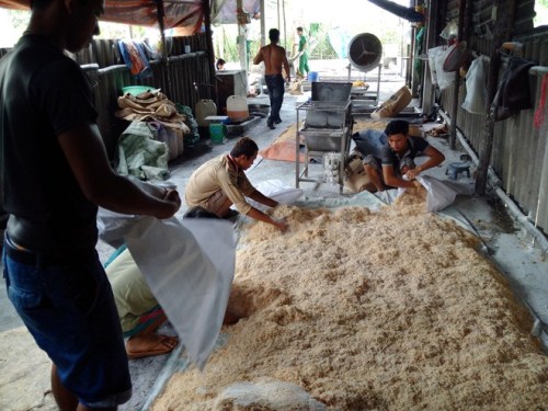 Ông Thương còn cho biết, ông và công nhân phải làm riêng vài kg chà bông để ăn chứ không ăn loại bán ra ngoài. Lý do, chà bông bán ra ngoài bẩn, pha trộn nhiều.