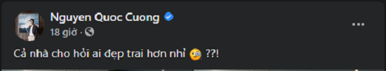 Mới đây 3/11, Cường Đô La đăng tải bức hình chụp cùng con trai Subeo kèm dòng trạng thái hóm hỉnh: "Cả nhà cho hỏi ai đẹp trai hơn nhỉ?"