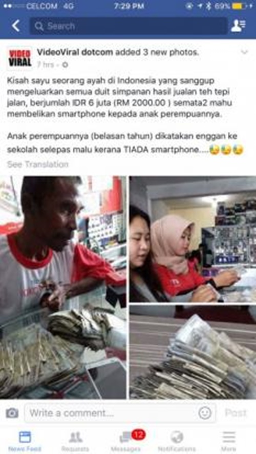 "Người đàn ông này đã sẵn sàng bỏ ra tất cả số tiền 6 triệu rupi (khoảng 447 USD) mà ông ta vất vả lắm mới kiếm được từ việc bán trà đá trên đường phố để mua cho con gái mình một chiếc điện thoại smartphone.