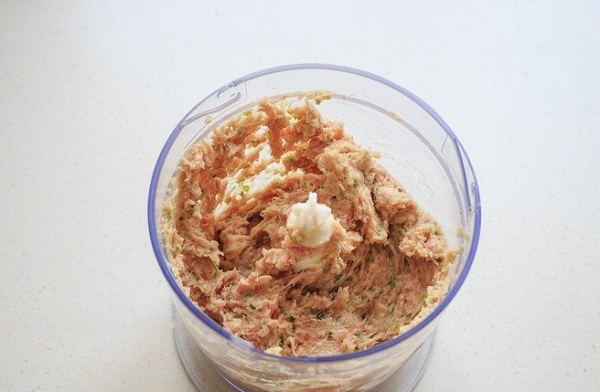 - Bước 1: Cho thịt băm và tôm vào máy xay, thêm hành lá thái nhỏ và chút muối vào xay nhuyễn.