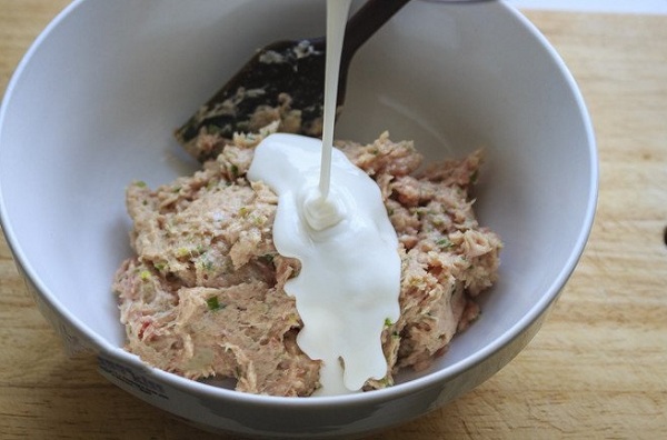- Bước 3: Cho tôm thịt xay ra bát, thêm nước tinh bột vừa hòa vào trộn đều. Sau đó thêm 1 lòng trắng trứng cùng dầu ngô vào. Trộn đều thành hỗn hợp mịn.