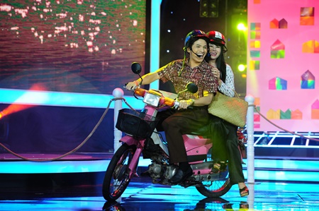 Lê Giang vào vai một cô gái bắt xe giữa đường nên bị Quốc Thiên trong vai “bác xe ôm vui tính” đụng trúng. Sự tình cờ gặp nhau đã “se duyên” cho họ thành một cặp đôi hạnh phúc. Điểm nhấn của tiết mục chính là chiếc xe cup 50 được sử dụng làm công cụ biểu diễn của cặp diễn viên. Khi kết thúc tiết mục, Quốc Thiên đã vô tình “mất lái” chạy chiếc xe máy đụng vào bàn ban giám khảo khiến Lê Giang phải lớn tiếng trách móc: “Trời ơi, tui nói đi ở bên đây không đi qua bên đó lát trừ điểm cho coi”.