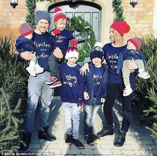 Hai vợ chồng Faye và Matthew Gooding cùng 5 đứa trai: Ralph 9 tuổi, Judah 7 tuổi, Hunter 4 tuổi và cặp song sinh Freddie - Jasper 10 tháng. |