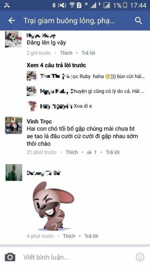 Đàn em của Bảo "Bội" là Vinh Trọc bình luận với lời lẽ dọa dẫm. |