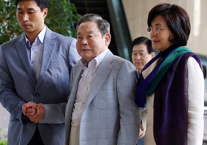 Bà Hong Ra-Hee, 71 tuổi, là phu nhân chủ tịch tập đoàn Samsung Lee Kun-Hee (giữa) – người giàu nhất Hàn Quốc hiện nay. |