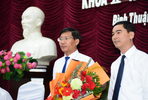 Tân Chủ tịch UBND tỉnh Bình Thuận Lê Tuấn Phong nhận hoa chúc mừng. Ảnh: Tuổi Trẻ |