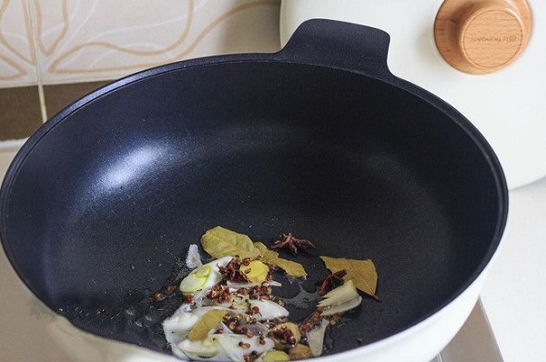 - 1 gốc hành, 1 mẩu gừng, 1 lá nguyệt quế, 1 thìa cà phê hạt tiêu Tứ Xuyên, 1 hoa hồi
