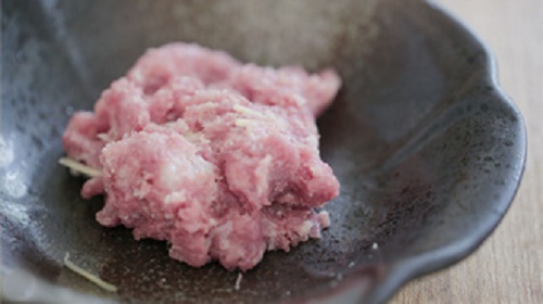 - Thịt rửa sạch băm nhỏ, cho thịt vào bát cùng chút gừng băm trộn đều, ướp thịt trong 15 phút.