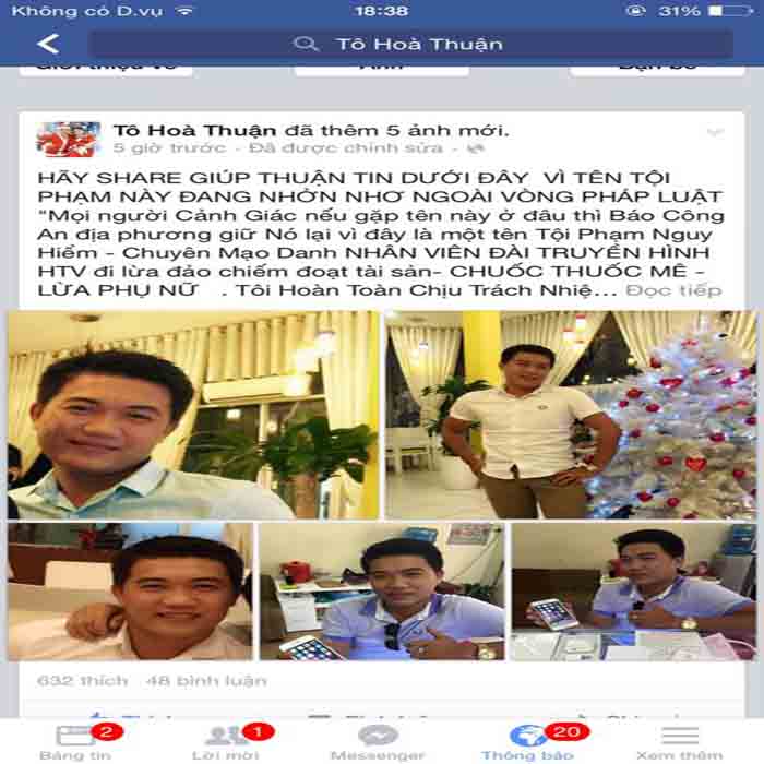 Để hiểu rõ hơn thủ đoạn lừa gạt của đối tượng Nam, PV đã gặp và tiếp xúc với các nạn nhân. Anh Trương Cảnh, chủ cửa hàng bán điện thoại Q.S. (ngụ đường Đinh Tiên Hoàng, phường 3, quận Bình Thạnh) kể: "Tôi và Tuấn cũng quen biết và kết bạn trên facebook. Khi gặp tôi cũng như những người khác, Tuấn đều giới thiệu anh ta là BTV của chương trình 60s trên HTV. Tuấn mấy lần nói với tôi, nếu muốn quảng cáo gì trên HTV thì cứ nói một tiếng là mọi chuyện xong. Mới đây, bỗng dưng Tuấn chạy chiếc xe máy Vespa LX màu vàng (đời 2010) tới cửa hàng của tôi, bảo muốn bán chiếc xe để mua điện thoại iPhone 6".