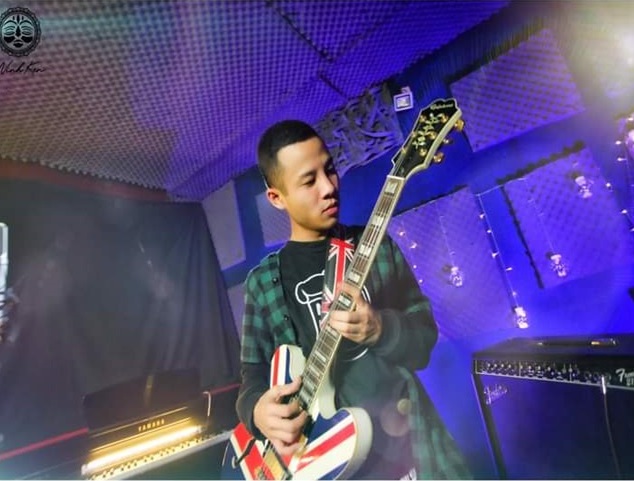 | Tuấn Ninh thể hiện sở thích đàn ca của mình. |
