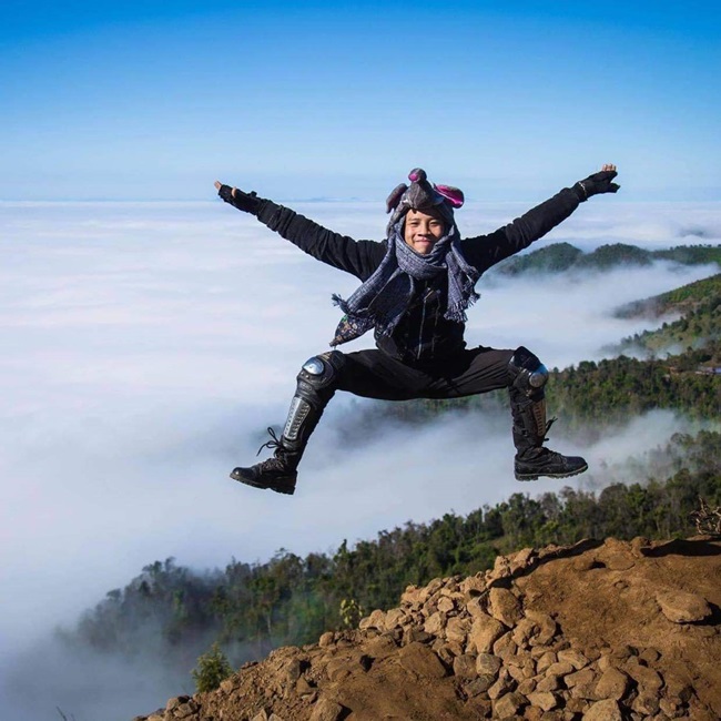 Đi nhiều nơi, chụp được nhiều hình ảnh ưng ý, tuy nhiên để kể về một tấm ảnh mà anh chàng yêu thích nhất trong hành trình du lịch khám phá của mình, Ninh niềm nở: “Đội mũ voi nhảy trên biển mây Tà Xùa - Sơn La là tấm hình mình tâm đắc nhất, đây là ngẫu hứng được người bạn chụp lại. Cho đến bây giờ, nhiều lần ghé nơi này nhưng mình không thể bắt lại được khoảnh khắc như vậy”.