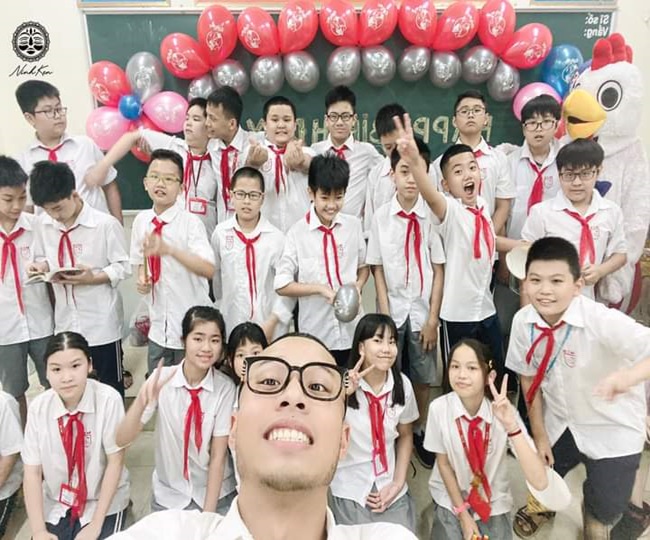 | Tuấn Ninh và các học bạn học trò của mình. |