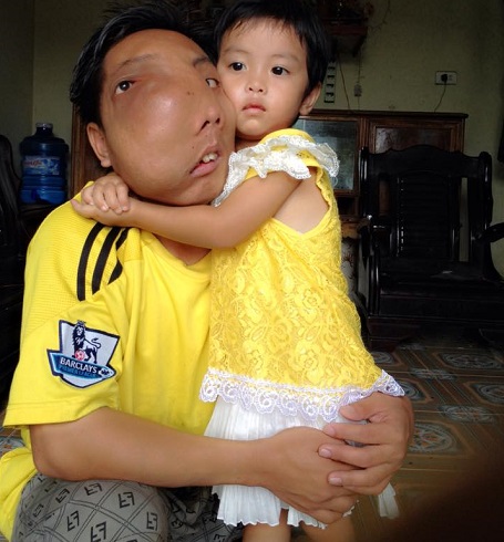 Đã 16 năm anh Thuận mang khối u khổng lồ trên khuôn mặt. |