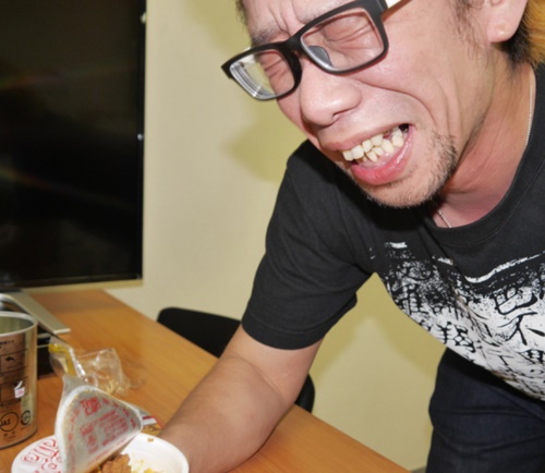 | Sato phải nhè miếng mì ra với biểu tình vô cùng "vui sướng". |