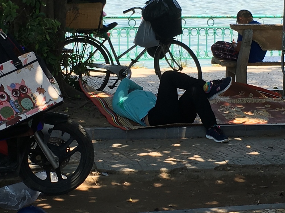 Tranh thủ bóng dâm để nghỉ trưa. Ảnh: Người đưa tin |