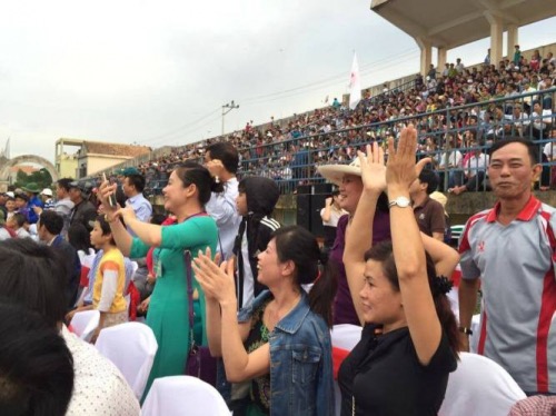 Gần 13.000 khán giả đến theo dõi trận đấu tạo nên kỷ lục vô tiền khoáng hậu của sân vận động Ba Đồn. |