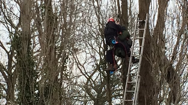 Những người phản đối việc chặt cây ở Anh được đưa xuống. |