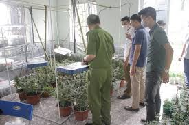 Khám xét khẩn cấp nơi ở của đối tượng, lực lượng phá án thu giữ tại tầng hai của căn nhà và ngoài vườn nhà đối tượng 859 cây thảo mộc nghi là cần sa, 1 bình thủy tinh chứa thảo mộc khô nghi là cần sa, 2 cốc thủy tinh, 1 xilanh chứa cao nhựa màu đen nghi là nhựa cần sa, 1 túi nilon chứa hạt giống thảo mộc nghi là hạt giống cây cần sa, các đồ vật liên quan đến việc trồng cần sa, chiết xuất và sử dụng trái phép nhựa cần sa như: 1 bình thủy tinh chứa chất lỏng màu xanh có gắn tẩu kim loại dùng để hút cần sa, 1 nồi cơm điện đã qua sử dụng, 2 giá sắt treo đèn, 20 hộp nhựa, 1 cân điện tử, 12 đèn sưởi, 12 đèn tuýp màu trắng, 1 máy ép nilon cùng 2.225.000 đồng.